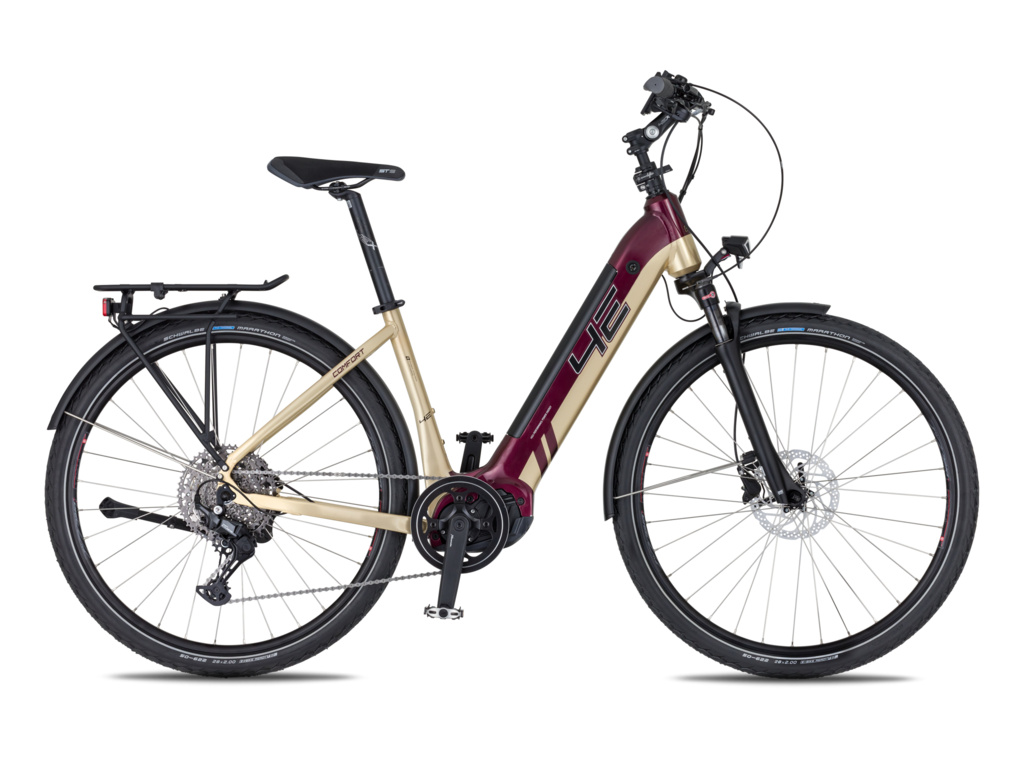 Nízkonástupové trekingové elektrokolo s 28" koly, motorem Bafang (80 Nm), baterií 720 Wh,a přehazovačkou Shimano Cues 1x10.