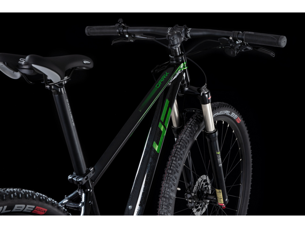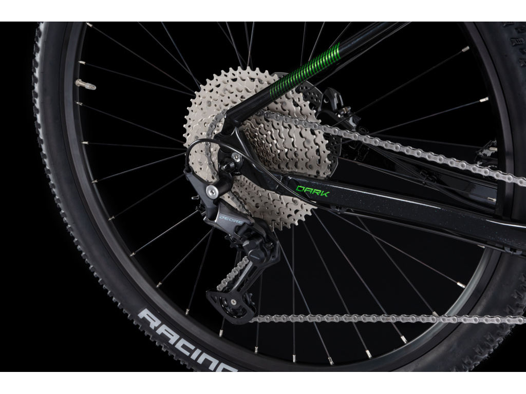 4EVER Dark Sport predstavuje parádny juniorský horský bicykel postavený s ohľadom na čo najnižšiu hmotnosť a čo najlepšie jazdné vlastnosti v teréne. Základom je veľmi ľahký hliníkový rám so špecifickou geometriou, ktorá zaisťuje skvelú ovládateľnosť. O maximálny komfort sa stará vzduchová vidlica SR Suntour XCR Air so zdvihom 100 mm, ktorú je možné presne nastaviť podľa hmotnosti mladého jazdca. Pohon je osadený špičkovou sadou Shimano Deore s 1x12 rýchlosťami, ktorá ponúka obrovský rozsah prevodov pre zdolanie aj tých najprudších kopcov. Bezpečné zastavenie v každej situácii zaisťujú hydraulické kotúčové brzdy Shimano a o istý kontakt s povrchom sa starajú kvalitné plášte Schwalbe.
