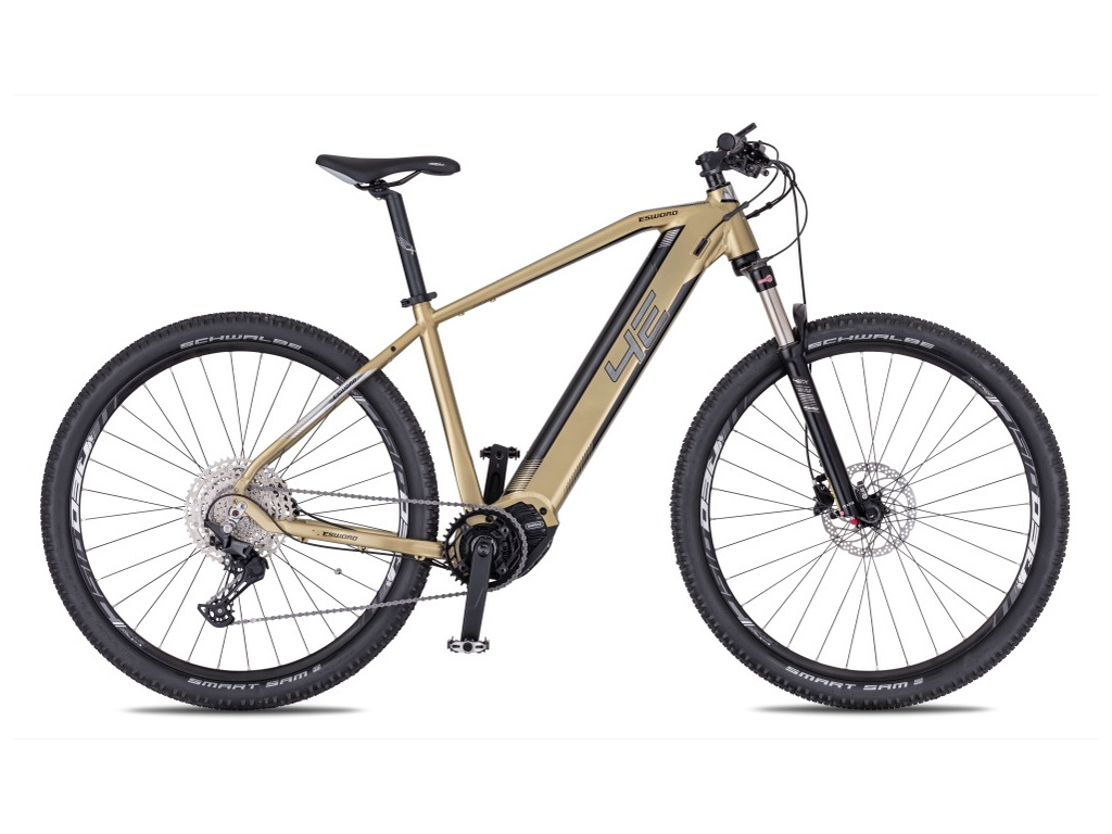 4EVER Esword Team je vybavený stredovým motorom Bafang M500 s krútiacim momentom 95 Nm a integrovanou batériou s dostačujúcou kapacitou 630 Wh. Moderný hliníkový rám je osadený vzduchovou vidlicou Rock Shox Judy so zdvihom 100 mm na zabezpečenie komfortu aj na náročných trasách, prevody Shimano Deore 1x12, ktoré umožňujú plynulé a spoľahlivé radenie s kvalitnými hydraulickými brzdami. Plášte Schwalbe Smart Sam 2.25 sú známe svojou všestrannosťou a spoľahlivosťou na rôznych typoch terénu. Moderný vzor behúňov zaisťuje nízke vibrácie a dlhú životnosť, zatiaľ čo vonkajšie hrany poskytujú optimálnu priľnavosť.
