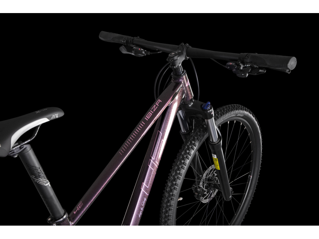 4EVER Ibiza Twenty 29 Lady predstavuje štýlový horský bicykel postavený na ľahkom hliníkovom ráme so špecifickou dámskou geometriou pre maximálne pohodlie. O komfort v teréne sa stará odpružená pružinová vidlica SR Suntour XCM, ktorú je možné uzamknúť páčkou z korunky vidlice. Pohon je postavený na modernej sade Shimano Cues s 2x10 rýchlosťami, ktorá ponúka široký rozsah prevodov pre ľahké zdolávanie kopcov aj rýchle rovinky pri zachovaní hladkého chodu radenia. Bezpečné zastavenie majú na starosti hydraulické kotúčové brzdy Shimano a o istý kontakt s povrchom sa starajú kvalitné plášte Schwalbe.