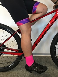 Posaďte sa na sedlo, nastavte kľuku s pedálom do spodného úvratu kolmo k zemi a na pedál položte nohu pätou. Zároveň dbajte na to, aby ste mali na pedáli aj druhú nohu, aby ste sedeli rovno a neboli naklonení na žiadnu stranu. V tejto polohe by ste mali mať nohu natiahnutú, v kolene je len trošku pokrčená (obr. 1).