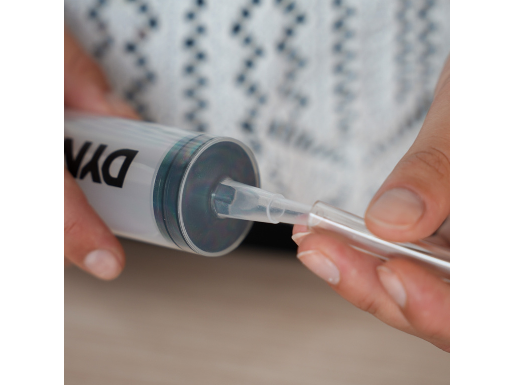 - Pretriase tmel a naplň injektor (pri plnení drž hadičku ohnutú, aby sa nepridalo priveľa).