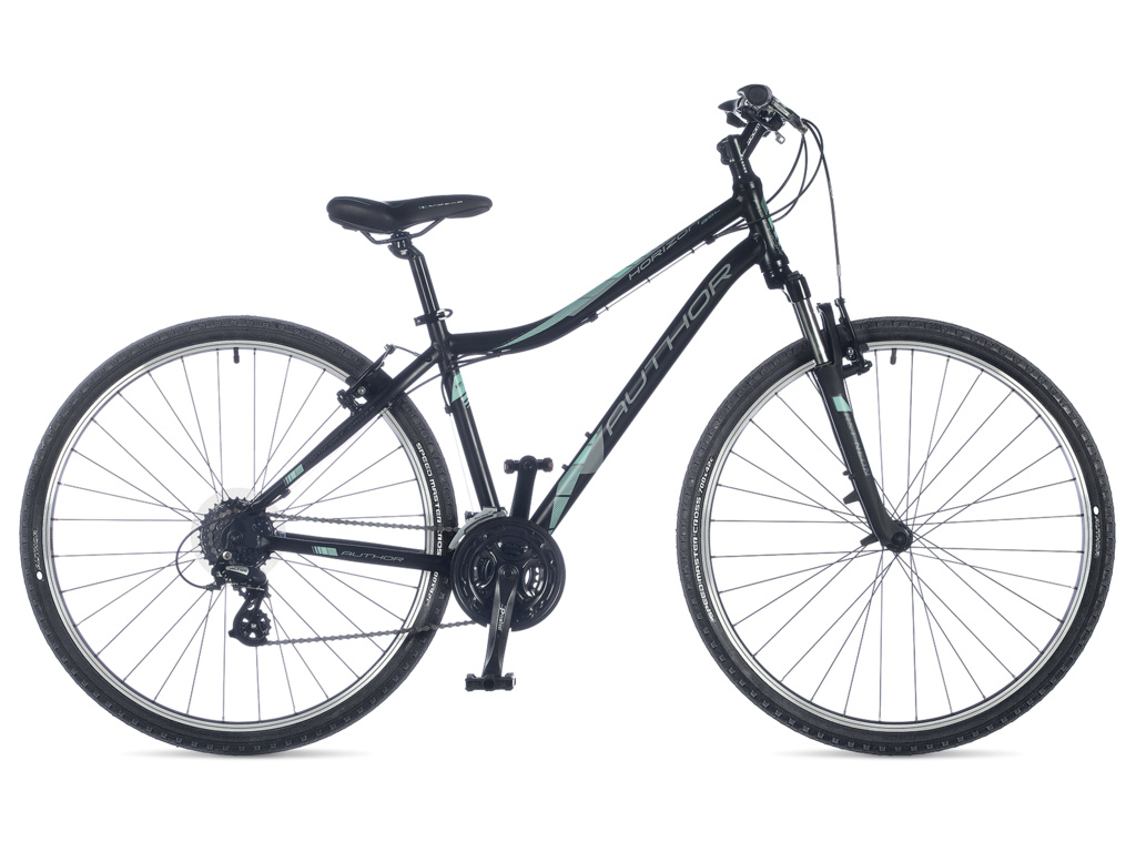 Author Horizon ASL je dámsky crossový bicykel pre rekreačných cyklistov. Duralový rám je vybavený odpruženou vidlicou RST so zdvihom 60 mm, ráfikovými brzdami Tektro a kvalitnými komponentmi Shimano s prevodmi 3x8.