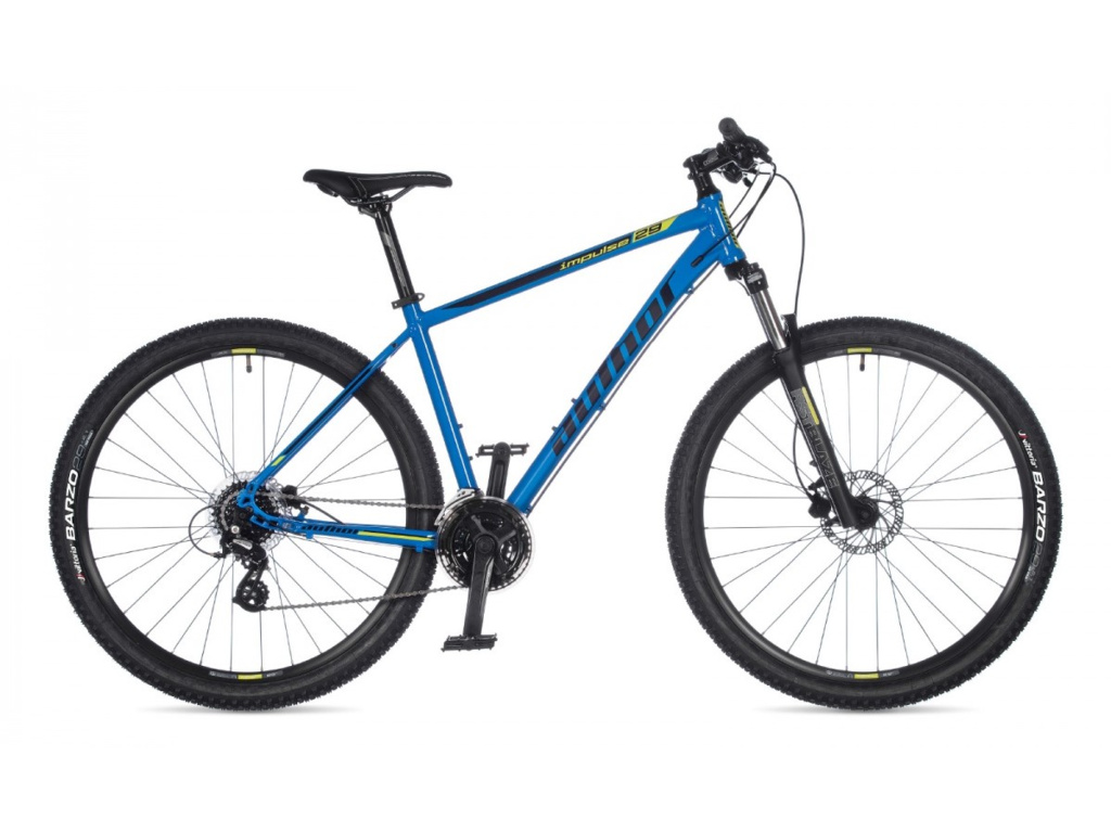 AUTHOR Impulse je horský bicykel s atraktívnym dizajnom, postavený na ľahkom ráme z hliníkovej zliatiny 6061 a 29-palcovými kolesami pre ľahkú ovládateľnosť. Môžete sa spoľahnúť na hydraulické kotúčové brzdy, prevody 3x8 a uzamykateľnú vidlicu. Všetko je to vyladené do modelu, ktorý ocenia rekreační cyklisti.