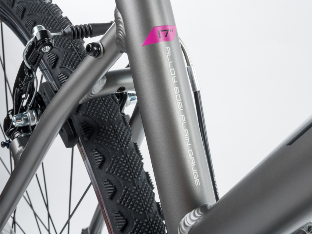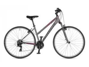 Dámsky crossový bicykel Author Linea je vhodný pre rekreačných cyklistov, ktorí uprednostňujú väčšie pohodlie na cestách a cyklotrasách. Pre maximálne pohodlie je vybavený odpruženou vidlicou, pohodlným sedlom, ergogripmi a spoľahlivým radením s 3x8
