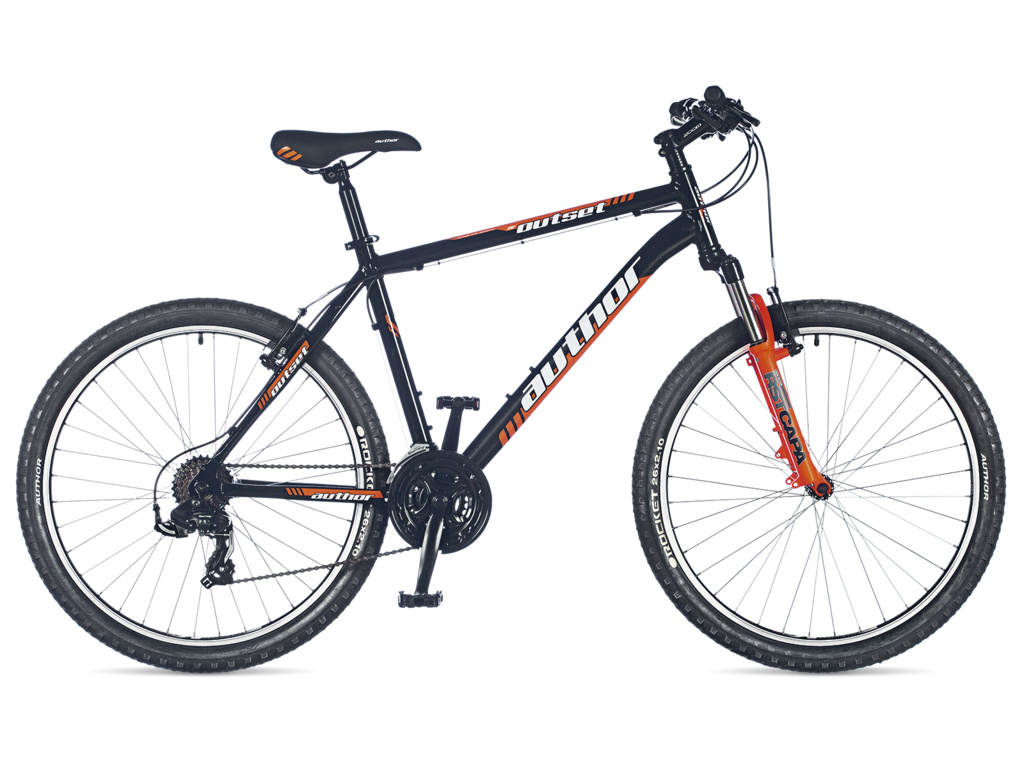 Základný horský bicykel Author Outset je vhodný na rekreačnú jazdu. Tento model má duralový rám s odpruženou vidlicou RST Capa so zdvihom 80 mm, komponenty Shimano s prevodmi 3x7 a ráfikové brzdy.