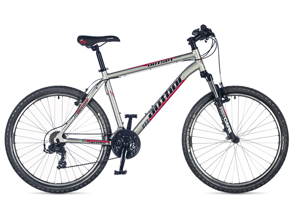 Základný horský bicykel Author Outset je vhodný na rekreačnú jazdu. Tento model má duralový rám s odpruženou vidlicou RST Capa so zdvihom 80 mm, komponenty Shimano s prevodmi 3x7 a ráfikové brzdy.