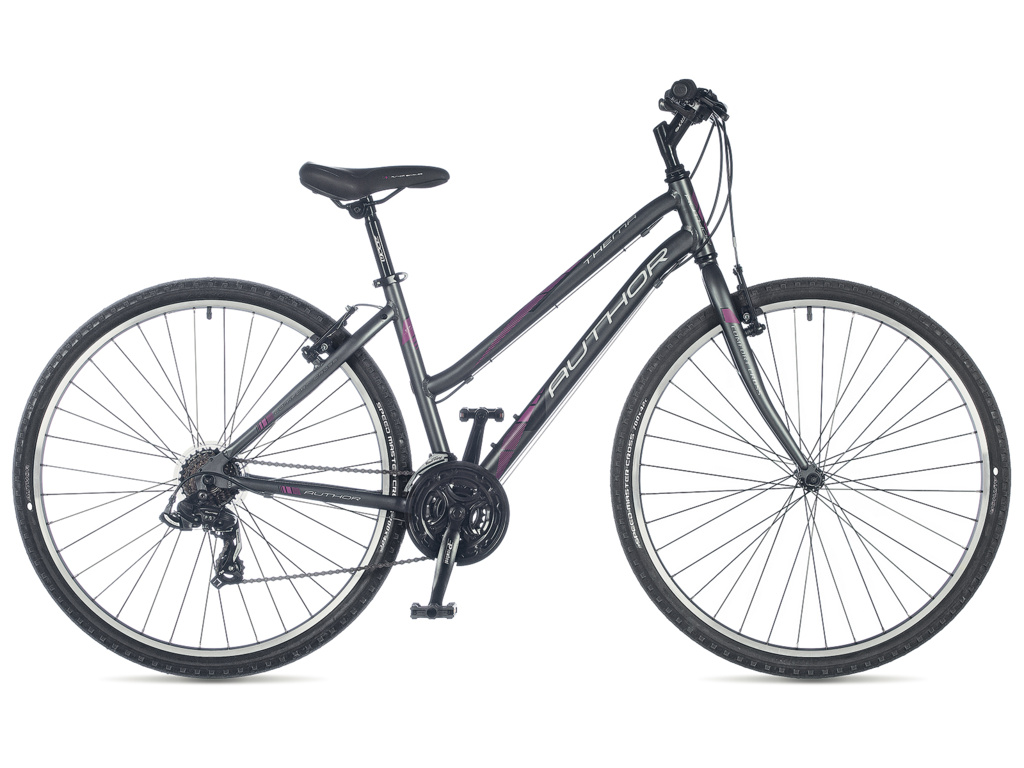 Author Thema je základný model dámskeho crossového bicykla, ktorý je skvelou voľbou pre príležitostných rekreačných cyklistov. Ľahký duralový rám je vybavený pevnou vidlicou, ráfikovými brzdami a komponentmi Shimano s prevodmi 3x7.