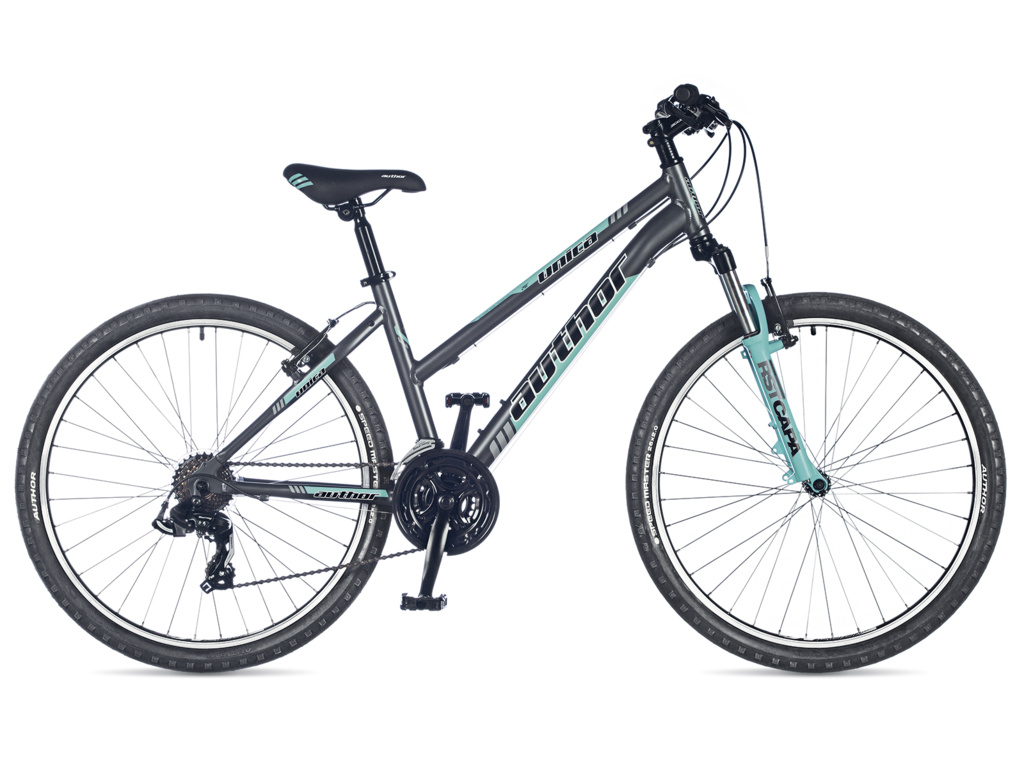 Základný dámsky horský bicykel Author Unica je vhodný na rekreačnú jazdu. Tento model má duralový rám s odpruženou vidlicou RST Capa so zdvihom 80 mm, komponenty Shimano s prevodmi 3x7 a ráfikové brzdy.