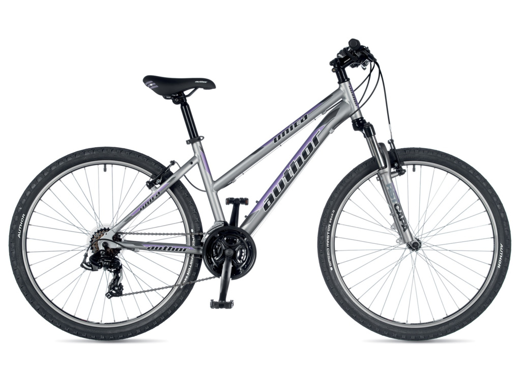 Dámsky horský bicykel Author Unica na duralovom ráme, s odpruženou vidlicou RST Capa a 26-palcovými kolesami.