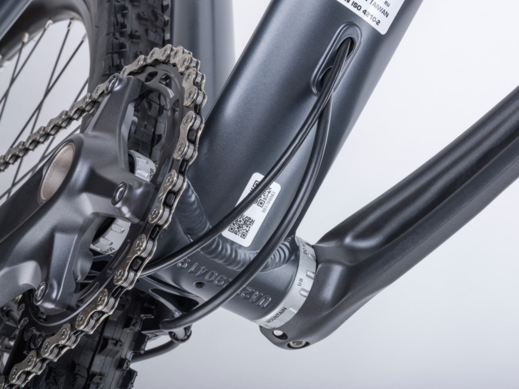 Hydroformní duralový rám s 2× zeslabovanými trubkamis a moderní downcountry geometrií
