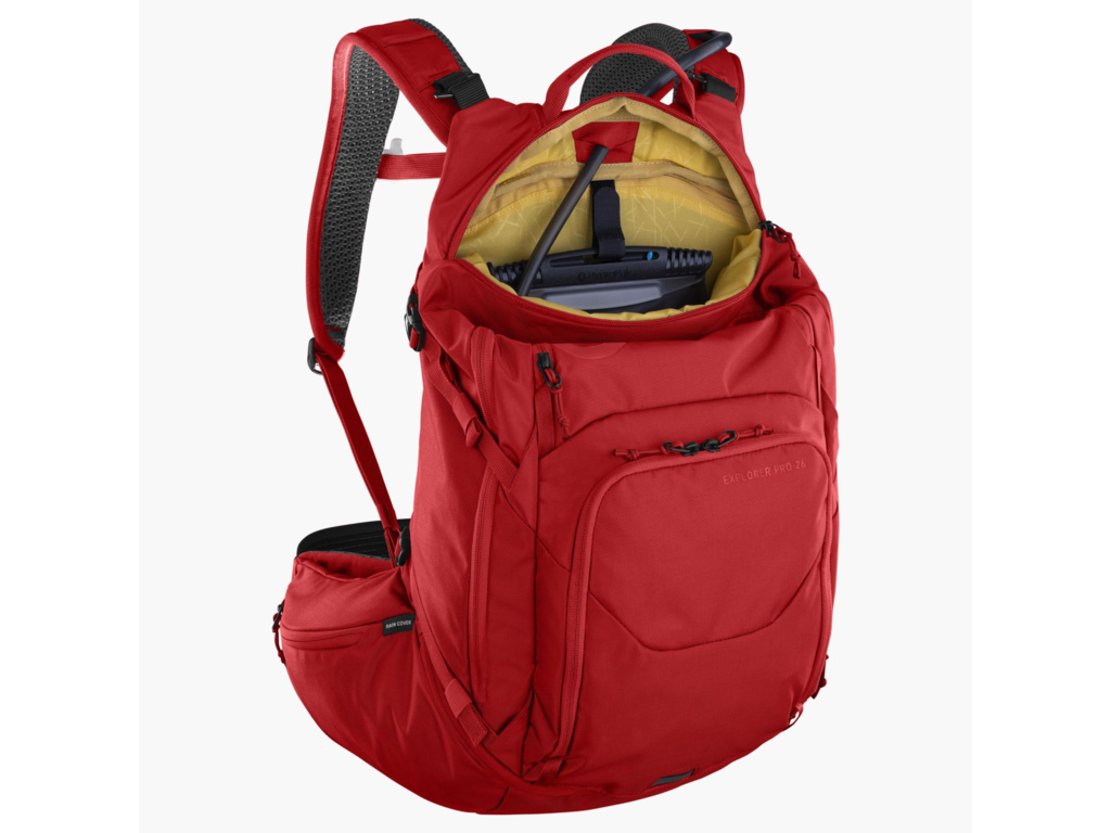 Okrem toho je tento model vybavený novou generáciou nášho AIR FLOW CONTACT SYSTEM, ktorý umožňuje efektívne odvetrávanie chrbta a zároveň poskytuje tesné, telu priliehajúce usadenie. EXTRA WIDE HIP WINGS, priedušný bedrový pás AIRO FLEX a optimalizovaný BRACE LINK na bešvových ramenných popruhoch prispievajú k dokonalému prispôsobeniu a výnimočnému pohodliu. EXPLORER PRO 30 navyše prichádza s PRIEHRADKOU NA RÝCHLY PRÍSTUP K NÁRADIU, PRIEHRADKOU NA HYDRATAČNÝ SYSTÉM, DRŽIAKOM NA PRILBU, PLÁŠŤOM PROTI DAŽĎU, samostatným WASH POUCH, priestrannými zipsovacími vreckami na bedrovom páse a množstvom ďalších doplnkových funkcií.