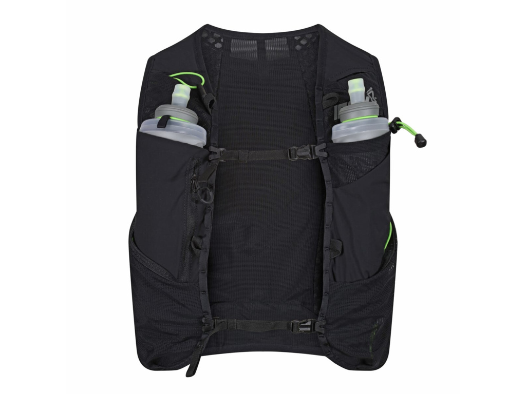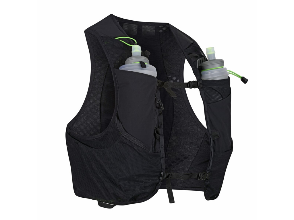 Súčasťou balenia sú dve pollitrové fľaše typu soft flask. Aj tie sa dajú uložiť dvoma rôznymi spôsobmi – tak ako ste mohli byť zvyknutí z pôvodnej RACE ULTRA PRO 5 VEST.