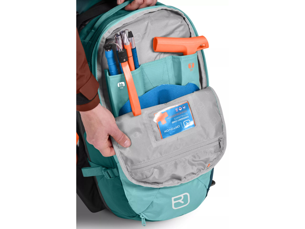 Batoh ORTOVOX AVABAG LiTRIC FREERIDE 26 S má několik praktických kapes: