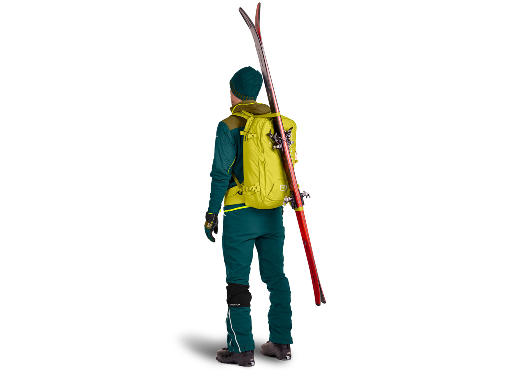 ORTOVOX Haute Route 32 l je skialpový batoh, který otevřete obvodovým zádovým zipem – podobně jako u kufru, a ke všemu máte vždy pohodlný přístup. Navíc je batoh extrémně odolný a přední strana batohu je vyztužena materiálem NYLON 420D OXFORD. Nemusíte mít obavy z ostrých hran lyží, maček nebo cepínů. Záda jsou tvořena z pevné konstrukce a lisované pěny umístěné do různých zón tlumení. Ramenní a bederní popruhy jsou pro vyšší komfort vyztužené a tlumeny kolem šíje. Váha nákladu batohu je směřována vždy ke středu těla, a tak vám ani plně naložený batoh nebude dělat sebemenší potíže nebo bránit v dokonalém požitku z horských aktivit. Batoh disponuje kromě hlavní kapsy také dalšími sedmi kapsami: Samostatná kapsa na lopatu a sondu, horní kapsa na rukavice, čepici a brýle, bezpečnostní kapsa, bederní kapsička vhodná pro telefon, plochá kapsa vhodná na mapu, buzolu, turistický deník a dvě drobné kapsičky pro uschování popruhů, přezek a síťky na helmu.