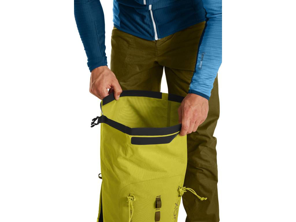 Velmi lehký nepromokavý lezecký batoh, který pevně drží na zádech, nepřekáží, je odolný a připevníš na něj spoustu lezeckého vybavení. Uzavíratelný pomocí praktického rolovacího uzávěru. Extrémně lehký nepromokavý batoh ORTOVOX TRAD 22 DRY je navržen čistě pro horolezce do nejhorších podmínek. Podle toho je i výše posazené těžiště. S hmotností pouhých 600 g. Minimalistický a kompaktní design umožňuje pohyb po skále bez nechtěného zachytávání. Při nástupu či sestupu zase oceníš možnost důmyslného uchycení lezeckého materiálu. Výška batohu je navržena tak, aby batoh nepřekážel při záklonu hlavy, ani při pohybu s helmou. Pohodlný přístup do hlavní komory zajišťuje rolovací uzávěr a díky světlému vnitřku v něm lehko najdeš všechno, co potřebuješ.