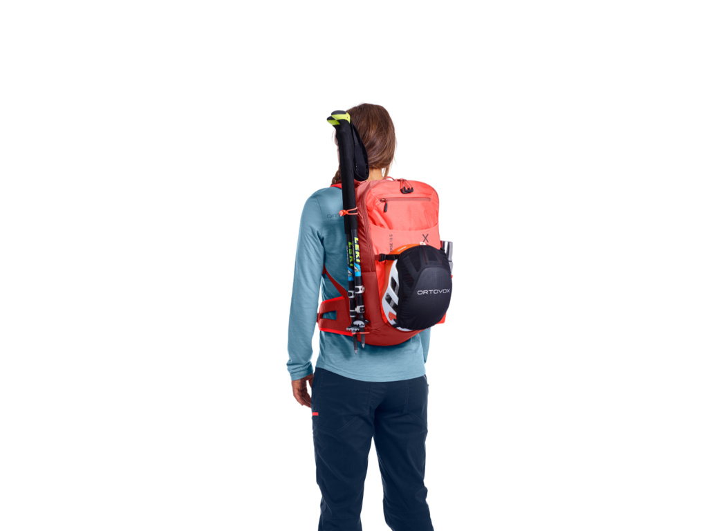 ORTOVOX Traverse 18 l je prepracovaný turistický batoh chváliaci sa polstrovaným chrbtovým systémom aj popruhmi s dômyselným odvetraním. Sedí aj pri ťažšom náklade, a pritom necháva prúdiť vzduch pre váš komfort pri nosení. Keď príde nepriaznivé počasie, svoje veci ochránite praktickou integrovanou pláštenkou. Tá slúži ako dodatočná ochrana batohu, ktorý je vyrobený z robustného vodeodolného materiálu, tvoreného z 72% recyklovaného polyamidu, zároveň tak šetríte životné prostredie. Praktické sú elastické vrecká aj možnosť uchytenia paličiek či integrovaná sieťka na helmu.