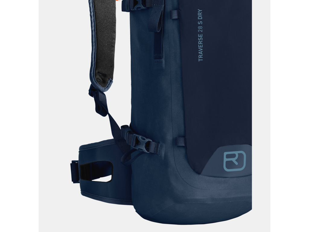 ORTOVOX Traverse 28 l je všestranný nepremokavý batoh na náročnú turistiku v lete aj zime. Polstrovaný chrbtový systém aj popruhy s dômyselným odvetraním vám pohodlne sedia aj pri ťažšom náklade, a pritom nechávajú prúdiť vzduch pre váš vyšší komfort pri nosení. Keď príde nepriaznivé počasie, vaše veci sú vďaka nepremokavému materiálu (viac ako 50 000 mm) v bezpečí. Praktická je možnosť odopnutia vrchného veka alebo uchytenie paličiek či integrovaná sieťka na helmu. V hlavnej komore je vrecko na rezervoár vody s možnosťou vyviesť hadičku v strede medzi ramennými popruhmi, na ktorom je praktické pútko na jeho uchytenie. Vnútri hlavnej komory je malé skryté vrecko na doklady, cennosti a hotovosť. Bočné sťahovacie popruhy využijete na zmenšenie batohu alebo na uchytenie vybavenia príp. lyží. Model aj napriek tomu stále dosahuje nízku váhu (iba 1220 g) a vďaka použitým materiálom a technológiám je aj veľmi odolný a pevný.