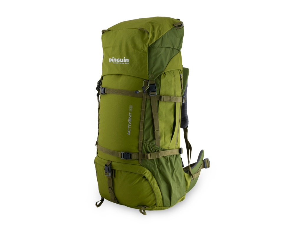 PINGUIN Activent 55 je prepracovaný turistický batoh s dvoma komorami na oddelenie prepravovaného vybavenia podľa početnosti jeho používania (možnosť prepojenia oboch komôr v jednu rozopnutím prepážky). Sieťované zipsové vrecko na vnútornej strane veka pojme vaše cennosti a zaručene vás poteší aj stredový kompresný popruh pod vekom. Ľahko odopínateľné priestranné veko batohu sa dá použiť ako ľadvinka alebo taška cez rameno. Zips spodnej komory je istený samostatným popruhom so sponou. Vonkajšie zipsové vrecko na veku je vhodné na uloženie rýchlo dostupného vybavenia (napr. lekárne) a potravy. Prepážka oddeľuje vodný vak od ďalšieho prevážaného vybavenia vo vnútri hlavnej komory. Výstup na hadicu vodného vaku je medzi hornými balančnými popruhmi. Súčasťou je aj výrazná pláštenka v samostatnom zipsovom vrecku na veku batohu.