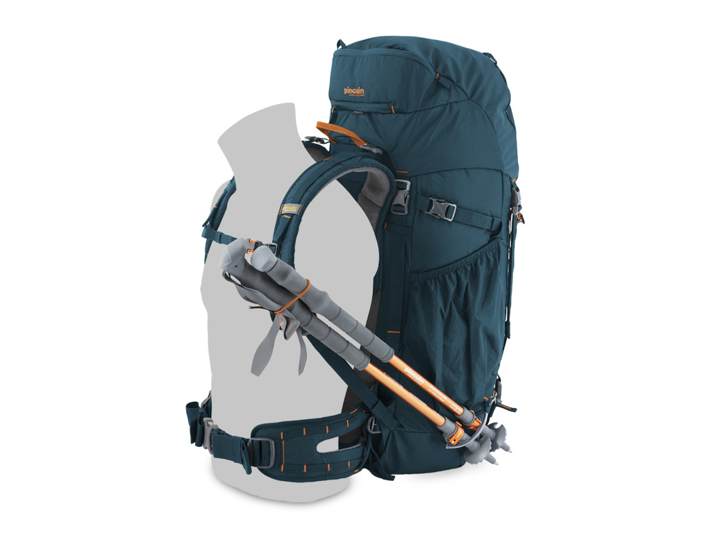 Dve komory na oddelenie prepravovaného zariadenia podľa frekvencie jeho používania, možnosť spojenia oboch komôr do jednej otvorením priečky. Zips spodnej komory je zabezpečený dvojicou popruhov s možnosťou pripevnenia ďalšieho materiálu (napr. stanu).Prepážka na oddelenie nádrže na vodu od prepravovaného zariadenia vo vnútri hlavnej komory. Vetraný chrbtový systém E3D udržuje ťažisko batohu čo najbližšie k chrbtu a zabezpečuje maximálnu ventiláciu.Chrbát batohu je vystužený odnímateľnou doskou z HDPE s integrovanou duralovou výstužou, ktorá pomáha rozložiť hmotnosť prepravovaného nákladu na chrbát a eliminuje tlak prepravovaných predmetov na chrbát.Ramenné popruhy so zosilneným polstrovaním v oblasti ramien pre ešte väčší komfort pri preprave ťažkých nákladov sú v hornej časti perforované pre zvýšenie priedušnosti. Vyvažovacie popruhy v hornej časti ramienok a na bokoch pre dokonalé prispôsobenie sa chrbtu a elimináciu pohybu pri chôdzi. Výstup hadice vodného vaku medzi ramennými popruhmi.Jednoduché odpojenie