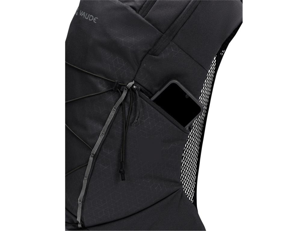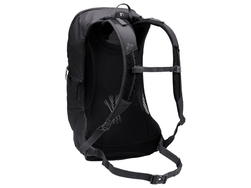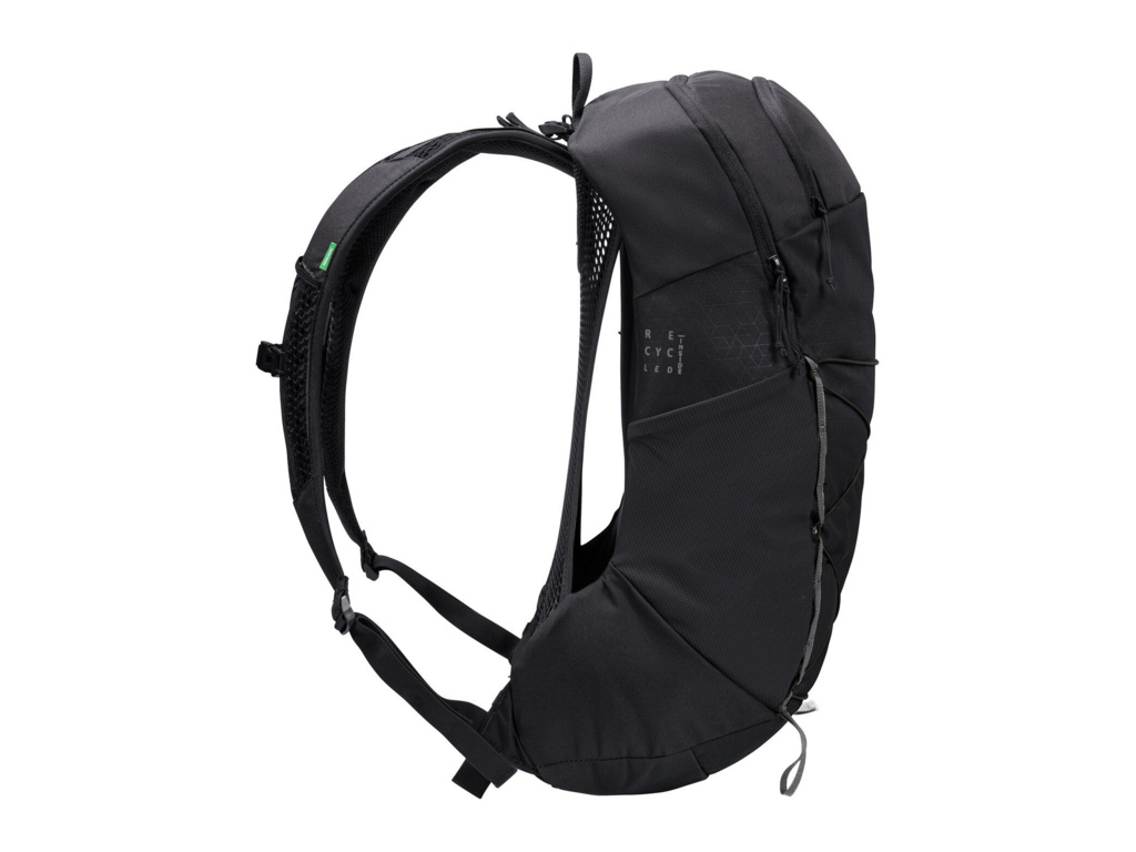 Turistický batoh Agile Air o objemu 20 L se v horku vyplatí: Odvětrávaný nosný systém Aeroflex 3D vytváří na třech stranách otevřený prostor mezi batohem a zády. To umožňuje cirkulaci vzduchu na všech stranách a znatelně snižuje zahřívání. Turistický batoh Agile Air 20 nabízí také polstrovanou přihrádku na chytrý telefon nebo sluneční brýle, elastickou síťovanou kapsu na boku a dostatečný úložný prostor na pláštěnku, převlečení a jídlo. Ramenní popruhy Ergoshape se pohodlně nosí a neškrtí. Bederní pás lze rychle odejmout pro každodenní použití nebo při nošení lehkého nákladu. Na batohu je samozřejmě také držák na hole. Na elastickou šňůrku lze během chvilky připevnit přilbu nebo bundu. Označení VAUDE Green Shape znamená ekologický a funkční výrobek vyrobený z udržitelných materiálů s certifikací bluesign®.