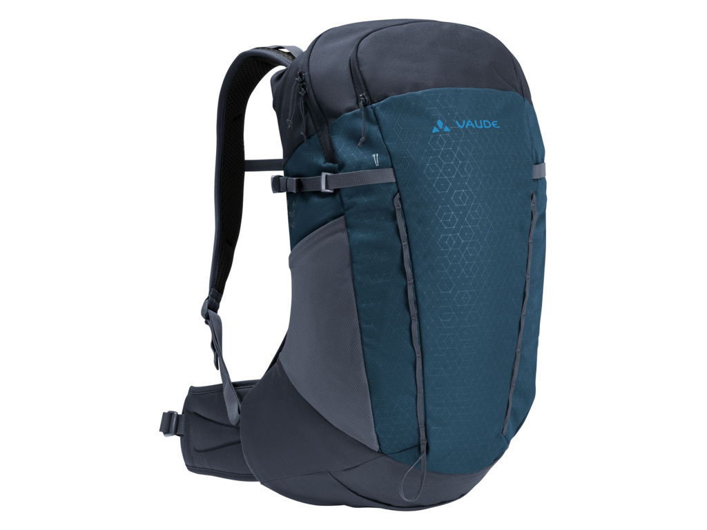 Hlavní přednost turistického batohu Agile Air 26 l se projeví v horkých letních dnech: zadní odvětrávaný nosný systém Aeroflex 3D vytváří mezi batohem a zády prostor otevřený ze tří stran. To umožňuje cirkulaci vzduchu na všech stranách a výrazně snižuje hromadění tepla. Výbava nenechává nic náhodě ani při celodenních túrách a v každodenním životě: na palubě je polstrovaná přihrádka na sluneční brýle a smartphone, elastická síťovaná kapsa na boku a držák na trekové hole. S objemem 26 litrů nabízí turistický batoh dostatek místa na oblečení do deště a na převlečení, svačinu a vodu i na drobnosti, jako je peněženka, GPS atd. Další vybavení lze připevnit na dva popruhy s poutky. Ramenní popruhy Ergoshape pohodlně sedí a neškrtí, zatímco bederní pás zajišťuje stabilní přenos nákladu. Označení VAUDE Green Shape znamená ekologický a funkční výrobek vyrobený z udržitelných materiálů s certifikací bluesign®.