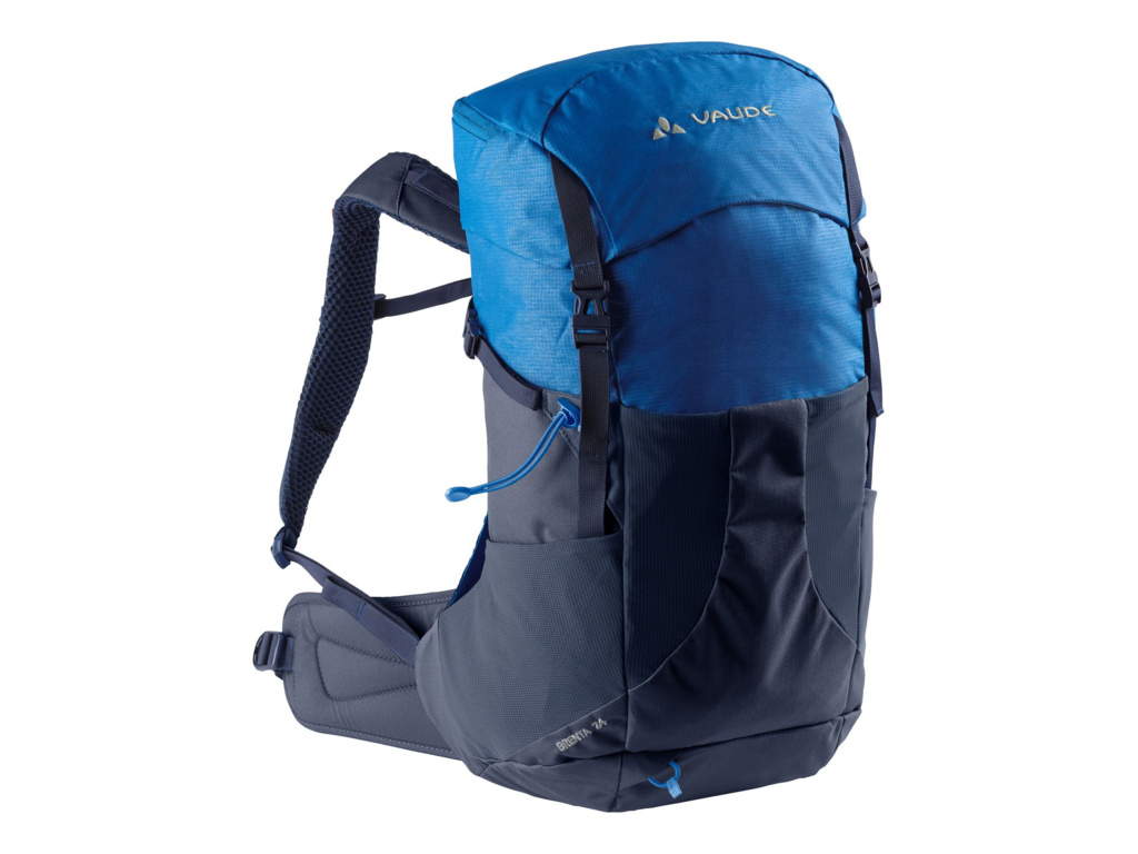 VAUDE Brenta 24 je klasický športový plecniak, do ktorého sa zbalíte aj na niekoľkodňovú cestu. Veľký hlavný vnútorný priestor je krytý chlopňou, ktorej výška je možné nastaviť. V klope je navyše zabudované vrecko na zips. Špeciálny Aeroflex chrbtový systém udržuje zadnú časť batohu dostatočne ďaleko od vášho chrbta, aby tadiaľ mohol vo veľkom prúdiť vzduch a chrbát sa tak nepotil. Systém F.L.A.S.H je použitý v ramenných popruhoch. Sú špeciálne dierované tak, aby nimi prúdilo dostatok vzduchu a pri pohybe ste sa pod nimi nepotili. Na nevyhnutné maličkosti môžete využiť dve bočné vrecká a