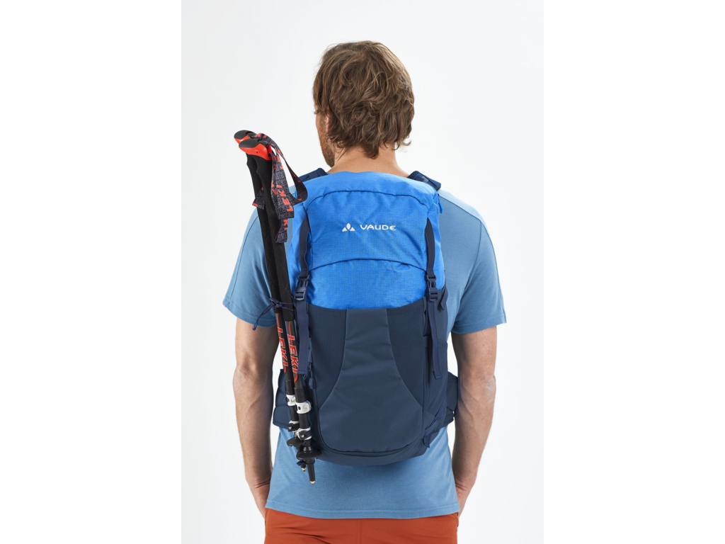 VAUDE Brenta 30 je obľúbený turistický batoh, do ktorého sa zbalíte aj na niekoľkodňovú cestu. Má veľký hlavný vnútorný priestor krytý chlopňou, ktorej výška je možné nastaviť. Špeciálny Aeroflex chrbtový systém udržuje zadnú časť batohu dostatočne ďaleko od vášho chrbta, aby tadiaľ mohol vo veľkom prúdiť vzduch a chrbát sa tak nepotil. Systém F.L.A.S.H je použitý v ramennom popruhoch. Sú špeciálne dierované tak, aby nimi prúdilo dostatok vzduchu a pri pohybe ste sa pod nimi nepotili. V klope je zabudované vrecko na zips a zaručene vás poteší dve bočné vrecká a vrecko na prednom paneli. Model je kompatibilný s vodným rezervoárom. Reflexné prvky na povrchu zvýšia vašu viditeľnosť, a tým aj bezpečnosť.