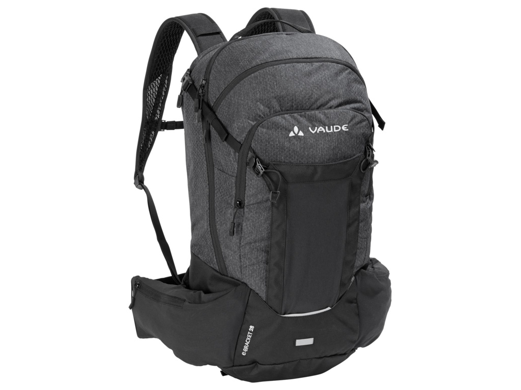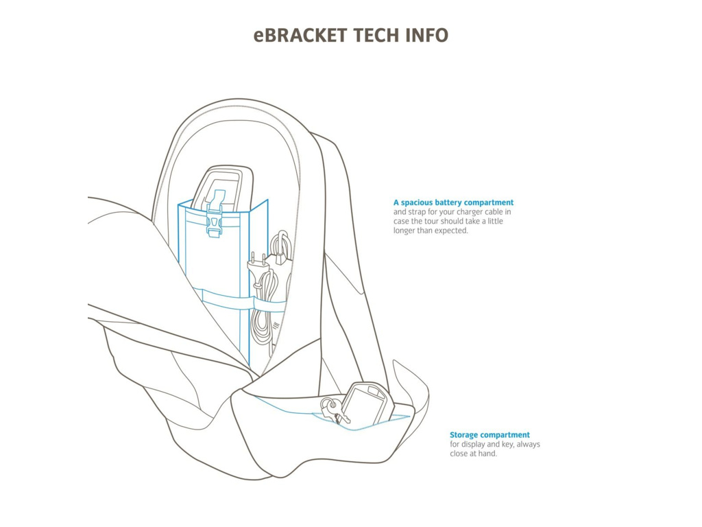 Dômyselne navrhnutá brašna VAUDE eBracket na e-bike vám poskytne dostatok pohodlia a priestoru na všetko potrebné - od náhradnej batérie až po cyklistickú prilbu. Batoh je odolný voči dažďu a jeho vrchná časť je navrhnutá s povrchovou úpravou Eco Finish, ktorá je šetrná k životnému prostrediu a neobsahuje fluórované uhľovodíky.