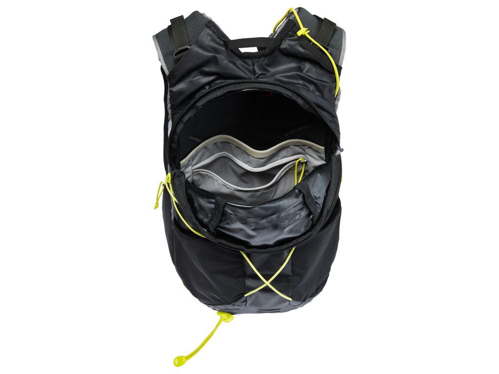 VAUDE Trail Spancer 8 je lehký, výjimečně pohodlný batoh o objemu 8 l pro rychlou turistiku, aktivní jízdu na horském kole a běh. Nabízí příjemné mikroklima a pohodlí při nošení a tlumení nárazů díky trojrozměrné konstrukci zad. Tato jedinečná technologie navíc obsahuje samostatné anatomické polstrování. Současně může teplo z vašich zad projít textilními materiály. Reflexní prvky a bezpečnostní světlo zvyšuje viditelnost za slabých světelných podmínek. Do napínací kapsy na ramenním pásu můžete uložit gely nebo pruhy a do dvou bočních kapes ostatní nezbytnosti. Zaručeně vás také potěší možnost připevnění holí na cestách a kapsa pro hydrovak.