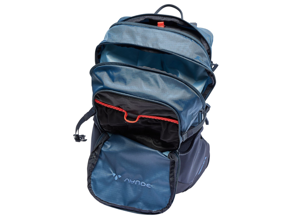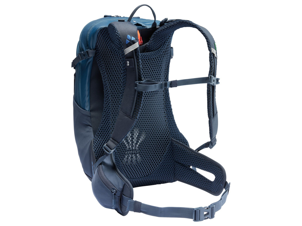 VAUDE Tremalzo 16 je väčšia brat z rodiny Tremalzo. Jedná sa o veľmi kompaktný batoh s objemom 16 l, ktorý je vhodný na horskú cyklistiku, trailové a enduro jazdenie. Batoh má nastaviteľné ramenné popruhy a perfektné odvetrávanie chrbta. Samozrejmosťou je už integrovaná pláštenka a príprava na pitný vak. Model sa vyznačuje dobrým rozvrhnutím oddielov s rýchlou a jednoduchou orientáciou. Reflexné prvky vám zaručia väčšiu bezpečnosť v horšom počasí. Priehradky na bokoch ponúkajú úložný priestor pre rukavice, gély alebo dušu. Ďalšou výhodou je možnosť pripnutia helmy. Systém Aeroflex 3D ponúka vynikajúce pohodlie pri nosení a optimálne vetranie chrbta. Batoh bol vyrobený v súlade s prísnymi ekologickými kritériami bluesign®.