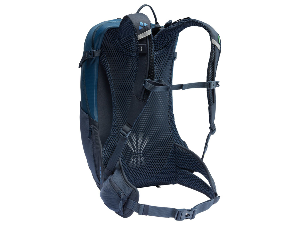 Vaude Tremalzo 22 je priestranný 22-litrový batoh na horskú cyklistiku. Ventilovaný sieťový chrbtový systém, nastaviteľná dĺžka chrbta, prepracované priehradky, ekologická výroba. Integrovaný kryt proti dažďu a príprava na vrecko na pitie. Skvelý vetraný chrbtový systém Aeroflex 3D, odolnosť, pohodlné nosenie a dobre navrhnuté priehradky vo vnútri. Veľmi priestranný hlavný priestor bez problémov pojme záložné oblečenie a potraviny na niekoľko dní. Vďaka šikovnému usporiadaniu priehradiek a rukovätí do nej pohodlne uložíte všetko, čo potrebujete na cestách - pumpu, prilbu, náradie a ďalšie veci. Kompresný popruh v hornej časti zabezpečuje, že obsah zostane na svojom mieste; ďalšie sieťované priehradky na bokoch vnútri.