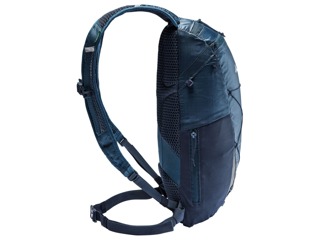 Všetky materiály majú vysoký podiel recyklácie. Ultraľahký silikonizovaný hlavný materiál tohto ľahkého batohu bol vyrobený pomocou certifikovaného procesu hmotnostnej bilancie, v ktorom je pyrolýzny olej extrahovaný z pneumatík na konci životnosti a privádzaný do konvenčného procesu výroby polyamidu. Chemická recyklácia znižuje emisie CO2 až o 60 %. Tento produkt je navyše klimaticky neutrálny. Analyzovali sme a systematicky znižovali všetky emisie pochádzajúce z materiálov, výroby a prepravy. Emisie, ktorým sa v súčasnosti nemožno vyhnúť, plne kompenzovala nezávislá nezisková organizácia myclimate. Označenie VAUDE Green Shape znamená ekologické, funkčné produkty vyrobené z udržateľných materiálov certifikovaných bluesign®.