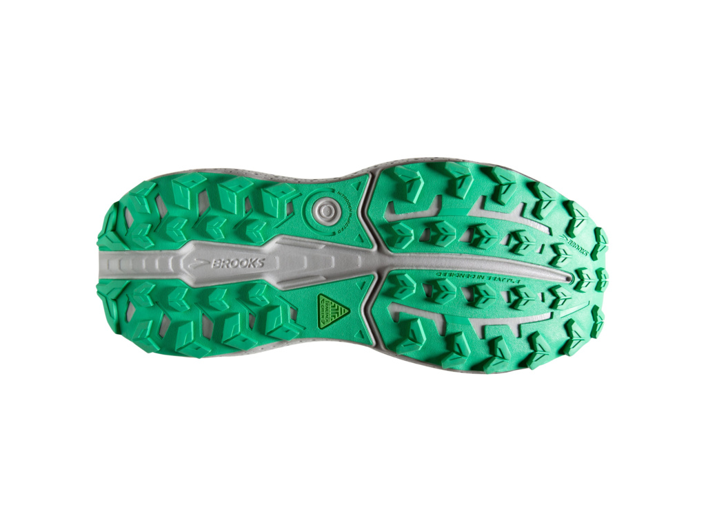 Tlmenie naboostované dusíkom prináša komfort, o ktorom sa vám nesnívalo. V traile ale nesmie chýbať ani stabilita a spoľahlivosť. O tieto vlastnosti sa stará široká platforma a umiestnenie chodidla hlboko vo vnútri tlmiacej peny. Tešiť sa tak môžete na stabilnú a úžasne pohodlnú jazdu naprieč rôznymi terénmi. Nová verzia Caldery prináša radikálne zmeny v geometrii aj spracovaní. Siedma generácia je vďaka tomu oveľa plynulejšia, a aj napriek mohutnému tlmeniu pôsobí nečakane prirodzeným dojmom. Reliéf hôr nie je iba dizajnovým prvkom. Vytiahnutie tlmenia nad úroveň chodidla nohu skvele stabilizuje a horské sedlá – nižšie miesta penovej vrstvy – potom podporujú flexibilitu celej topánky na správnych miestach. Inovované tlmenie DNA LOFT v3 poháňané dusíkom je ľahké, mäkké a práve vďaka dusíku má nízku hmotnosť a vysokú životnosť aj energetickú návratnosť. Dôležitý je aj tvar a geometria tlmenia. S platformou oveľa širšou, než je chodidlo a vyvýšenými bočnými hranami budete mať pocit, že žehlíte terén pod vami. Tento pocit sa dá prirovnať k jazde na celoodpruženom bicykli. Stačí pustiť nohy, a nielen v zbehoch si užívať vietor vo vlasoch bez starostí zo zlého došľapu. Zvršok pevne obopína chodidlo. Je ale dostatočne široký a v špičke anatomicky tvarovaný, aby netlačil ani pri celodennom behu. Prepracovaný materiál zvršku je nenasiakavý a vysoko odolný. Na šnurovacom systéme nájdete praktické pútko na schovanie šnúrok. V prednej a zadnej časti sa nachádzajú očká na upevnenie návlekov. Podošva TrailTack je rýdzi univerzál, poskytuje skvelú trakciu na suchom aj podmáčanom traile. Tvar jednotlivých špuntov je pritom navrhnutý tak, aby nedochádzalo k príliš rýchlemu opotrebovaniu ani pri behu po asfalte a spevnených cestách.