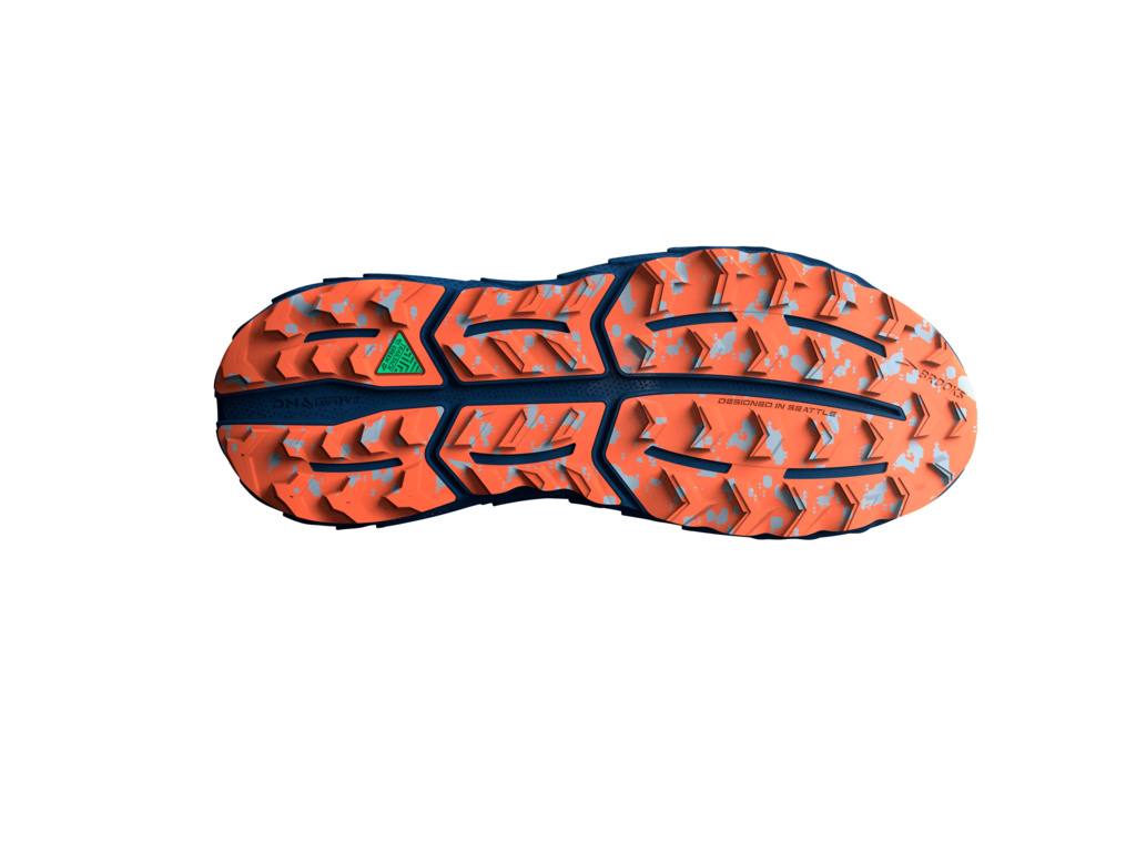 Nepremokavá verzia legendárnej krosovky Brooks Cascadia. Či už je váš bežecký rajón pretkaný kameňmi a koreňmi alebo prebiehate šotolinové chodníky, s Brooks Cascadia 17 si užijete stabilnú jazdu vždy a všade. Sedemnásta generácia Brooks Cascadia poteší ako začínajúcich trailových bežcov, tak aj skúsených pretekárov. Bude spoľahlivo fungovať v okolí miest aj v náročnejších horských terénoch. Pri polhodinovom kluse aj ultra na desiatky hodín. Cascadia vždy bola synonymom všestrannosti a s novou verziou to platí dvojnásobne. Nový TRAIL ADAPT SYSTEM kombinuje výstuhu rock shield, adaptívne tlmenie a segmentovanú podošvu pre maximálnu kontrolu a stabilitu v teréne. Inšpiráciu sme si zobrali pri tvare kopyta horskej kozy. Samostatne fungujúce bloky tlmenia aj gripu sa prispôsobia aj tomu najnáročnejšiemu terénu a vy sa budete môcť spoľahnúť na maximálnu stabilitu a kontrolu. Odľahčené tlmenie s penou DNA LOFT v2 zaistí pohodlie aj na dlhších vzdialenostiach. Medzi dvoma vrstvami tejto peny je vložený balistický Rock Shield, ktorý chráni chodidlo pred ostrými kameňmi bez toho, aby to topánke ubral na flexibilite. Drop dosahuje výšku 8 mm. Zvršok je typický Brooks. Dokonalý tvar, maximálny komfort a stredná šírka, ktorá vyhovuje takmer každému. Sme ochotní sa staviť, že vám Cascadia 17 sadne "na prvú dobrú". Chýbať nesmie výrazné výstuhy po celom obvode topánky, ktoré spoľahlivo chráni zvršok aj chodidlo. Samotný materiál zvršku je vysoko odolný a v neposlednom rade vysoko priedušný a nenasiakavý mesh. Na výrobu Brooks Cascadia 17 sa využíva viac recyklovaných materiálov ako kedykoľvek predtým a pri procese farbenia je využitých o 75 % menej vody ao 66 % menej energie.