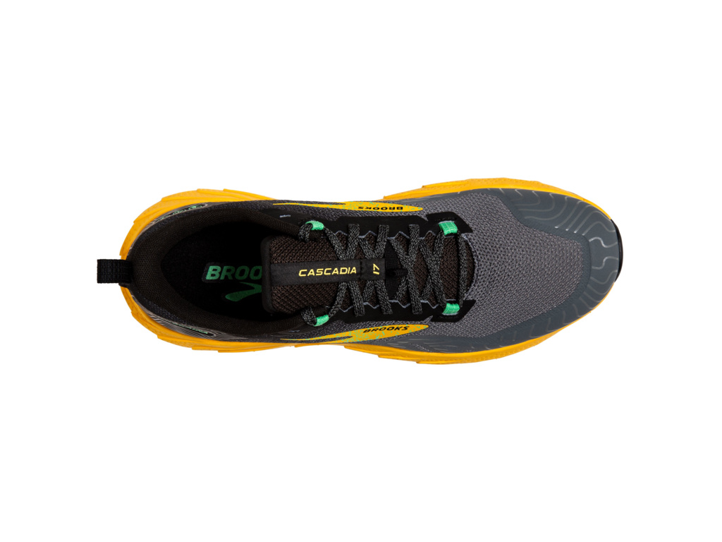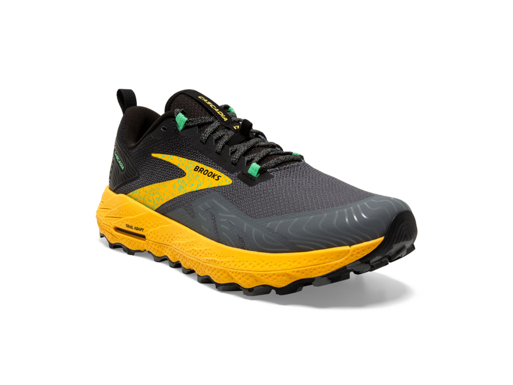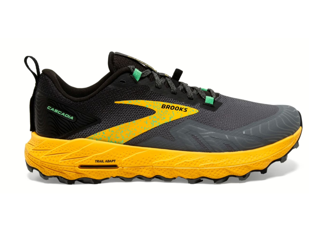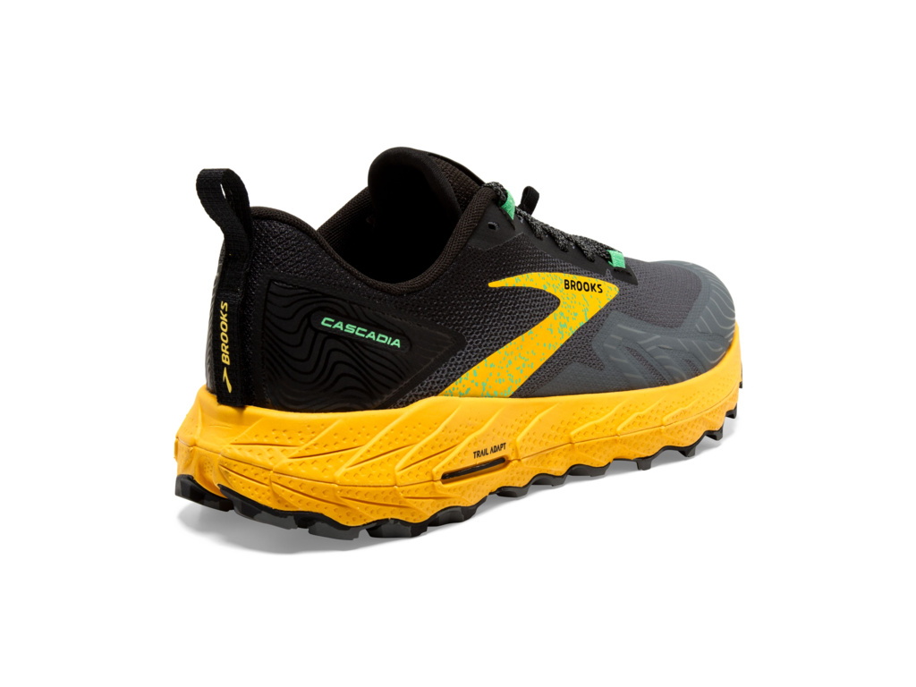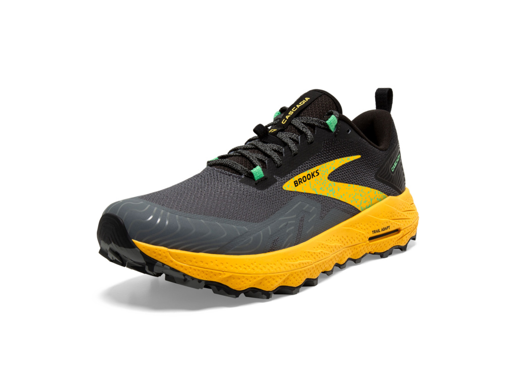 Sedemnásta generácia BROOKS Cascadia poteší ako začínajúcich trailových bežcov, tak aj skúsených pretekárov. Bude spoľahlivo fungovať v okolí miest aj v náročnejších horských terénoch. Pri polhodinovom kluse aj ultra na desiatky hodín. Cascadia vždy bola synonymom všestrannosti a s novou verziou to platí dvojnásobne. Nový TRAIL ADAPT SYSTEM kombinuje výstuhu rock shield, adaptívne tlmenie a segmentovanú podošvu pre maximálnu kontrolu a stabilitu v teréne. Inšpiráciu výrobcovia čerpali pri tvare kopyta horskej kozy. Samostatne fungujúce bloky tlmenia aj gripu sa prispôsobia aj tomu najnáročnejšiemu terénu a vy sa budete môcť spoľahnúť na maximálnu stabilitu a kontrolu. Odľahčené tlmenie s penou DNA LOFT v2 zaistí pohodlie aj na dlhších vzdialenostiach. Medzi dvoma vrstvami tejto peny je vložený balistický Rock Shield, ktorý chráni chodidlo pred ostrými kameňmi bez toho, aby topánke ubral na flexibilite. Drop dosahuje výšku 8 mm. Zvršok je typický Brooks. Dokonalý tvar, maximálny komfort a stredná šírka, ktorá vyhovuje takmer každému. Cascadia 17 vám zaručene sadne „na prvú dobrú”. Chýbať nesmú výrazné výstuhy po celom obvode topánky, ktoré spoľahlivo chránia zvršok aj chodidlo. Samotný materiál zvršku je vysoko odolný a v neposlednom rade vysoko priedušný a nenasiakavý mesh. Na výrobu Brooks Cascadia 17 sa využíva viac recyklovaných materiálov ako kedykoľvek predtým a pri procese farbenia je využitých o 75 % menej vody a o 66 % menej energie.