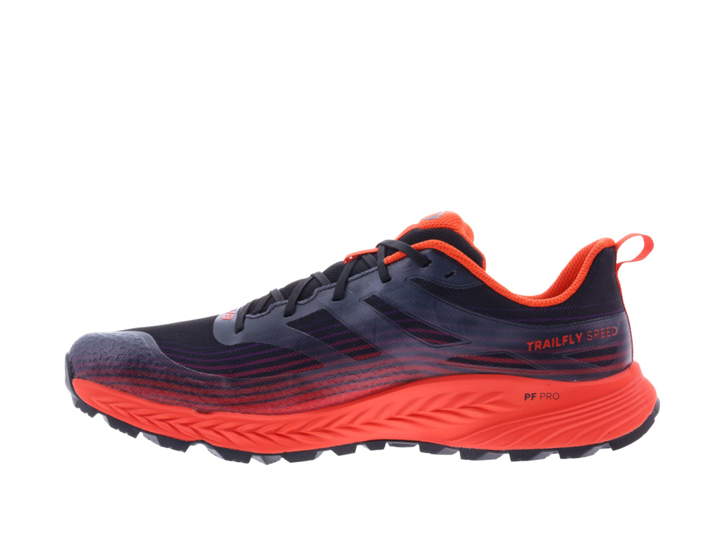 Trailová topánka navrhnutá pre svižné tempo v rôznorodom teréne. TRAILFLY SPEED je perfektnou voľbou pre rýchle tréningy alebo kratšie preteky nielen v horskom prostredí. Meshový zvršok s bezšvovou konštrukciou zaistí potrebnú priedušnosť. Stabilizačné prvky vedené od šnúrok až po päty potom spoľahlivo zafixujú chodidlo v topánke, takže ani technickejšie pasáže a prudšie zbehy nebudú žiadny problém. Nechýba chránič prstov a všitý jazyk, aby sa žiadny kamienok nedostal dovnútra. Fit topánky "wide" je veľmi priestranný. To platí obzvlášť v priestore priečnej klenby a prstov, kde je novo použitý anatomickejší tvar zvršku s veľkorysým priestorom pre palec. Tlmiaca pena FLYSPEED je vďaka dusíku použitom pri výrobe veľmi ľahká, pružná a zároveň mäkká. Vďaka výbornej energetickej návratnosti pridá energiu do každého odrazu. 11 milimetrov peny pod pätou plus 6 milimetrov vysoká vnútorná stielka BOOMERANG poskytnú dostatočné tlmenie na kratších rýchlych tratiach. Drop je tu 4 milimetre. O dodatočnú stabilitu a protekciu chodidla sa stará flexibilná META PLATE výstuha, ktorá ochráni chodidlo pred ostrými nástrahami trailu bez toho, aby obmedzila prirodzený cit pre terén. G-GRIP s prímesou grafénu má vylepšenú trakciu na mokrom povrchu. 4mm špunty skvele držia aj v technickejšom traile a zároveň zvládnu aj dlhšie prebehy po tvrdom povrchu. Podošva je stavaná s dôrazom na maximálnu všestrannosť. Vďaka tomu zvláda beh v kamenistom teréne, po lesných cestičkách aj na asfaltových cestách.