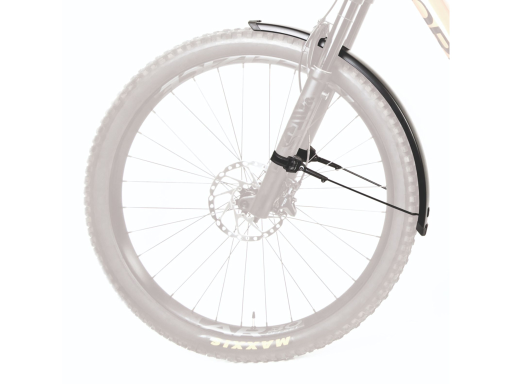 Predný blatník INFINITY UNIVERSAL MUDGUARD s čiernym matným povrchom je náprotivkom zadného blatníka INFINITY UNIVERSAL. Je možné ho behom okamihu priskrutkovať k mostu vidlice pomocou držiaka alebo upevniť pomocou mäkkých väzieb. U-držiak sa na vidlici upevňuje pomocou robustných pásikov na suchý zips.