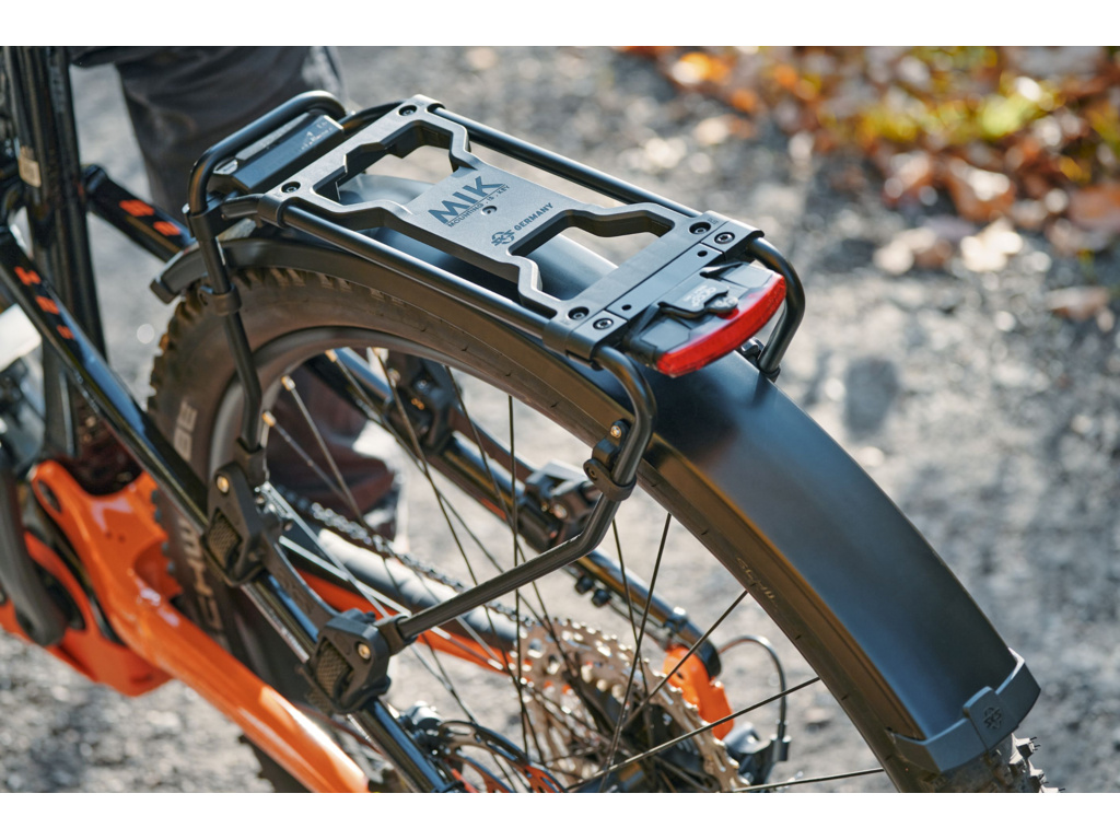 Vďaka pružnej sendvičovej konštrukcii z hliníka a plastu je blatník predného kolesa mimoriadne pevný a odolný proti korózii. Bezpečnostný systém ESC zaisťuje odpojenie vzpier v prípade, že sa medzi lúče zachytia vetvy. K dispozícii v dvoch šírkach profilu 56 alebo 75 milimetrov.