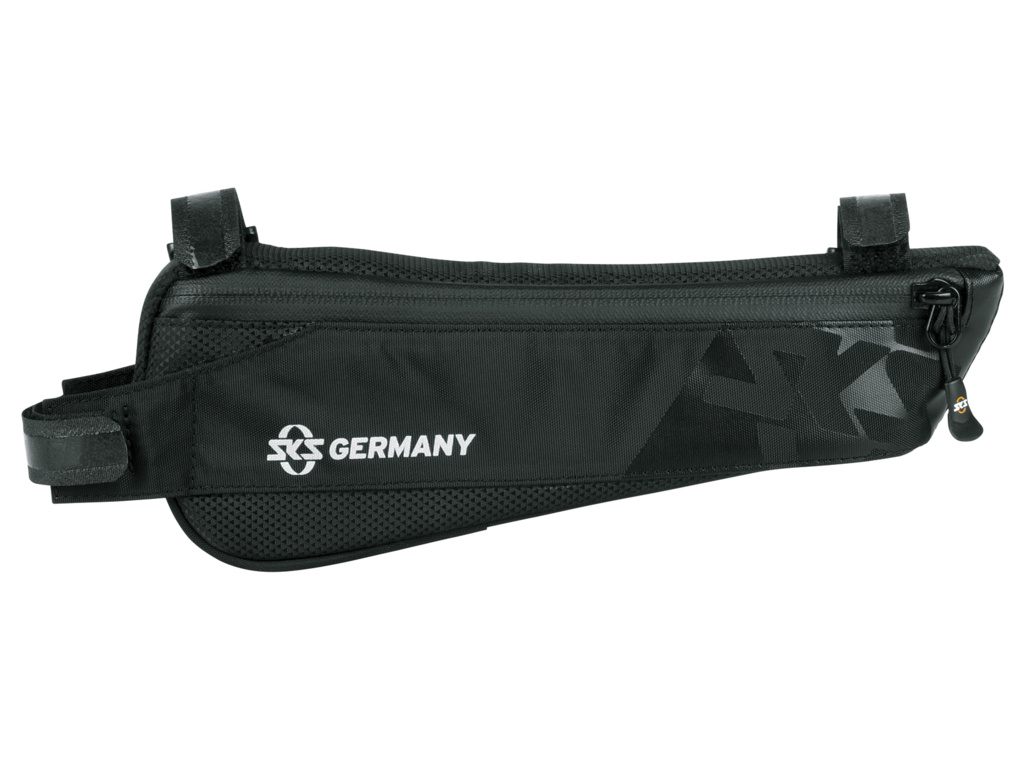 Ľahká rámová brašna SKS Racer Edge má perfektne aerodynamický tvar a pevný vodeodolný povrch. Aj napriek úzkemu profilu poskytuje rámová brašna dostatok miesta na cyklo náradie, náhradnú dušu a mobilný telefón. Štýlový dizajn dopĺňajú reflexné prvky a ergonomické zapínanie. K rámu sa brašna pripevňuje pomocou odolných pogumovaných suchých zipsov.