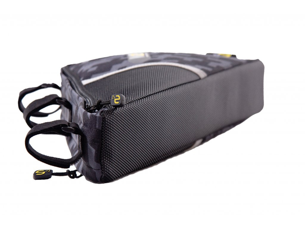 Taška na rám je pripevnená k rámu bicykla pomocou suchých zipsov. Vnútorná výstuha batožinového priestoru pevne drží tvar batožinového priestoru. 3M bezpečnostný reflexný pásik na batožinovom priestore vám zabezpečí lepšiu viditeľnosť na ceste.