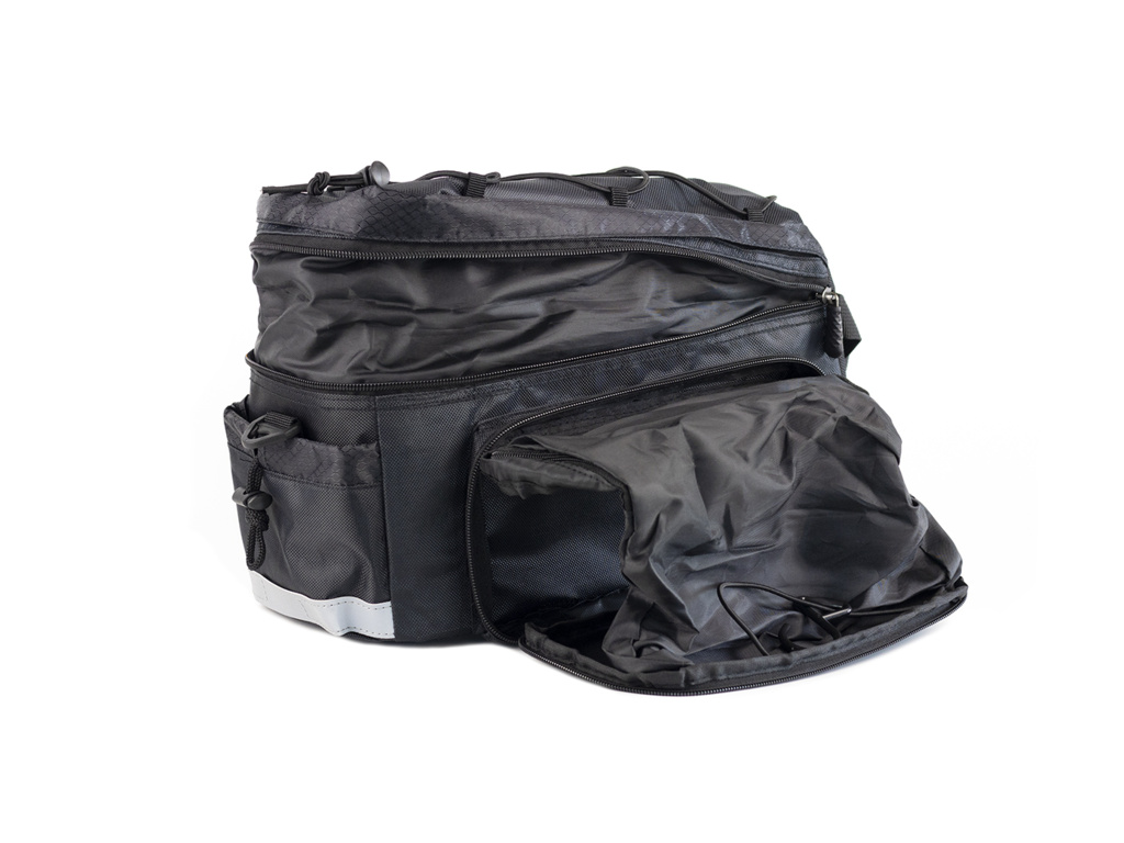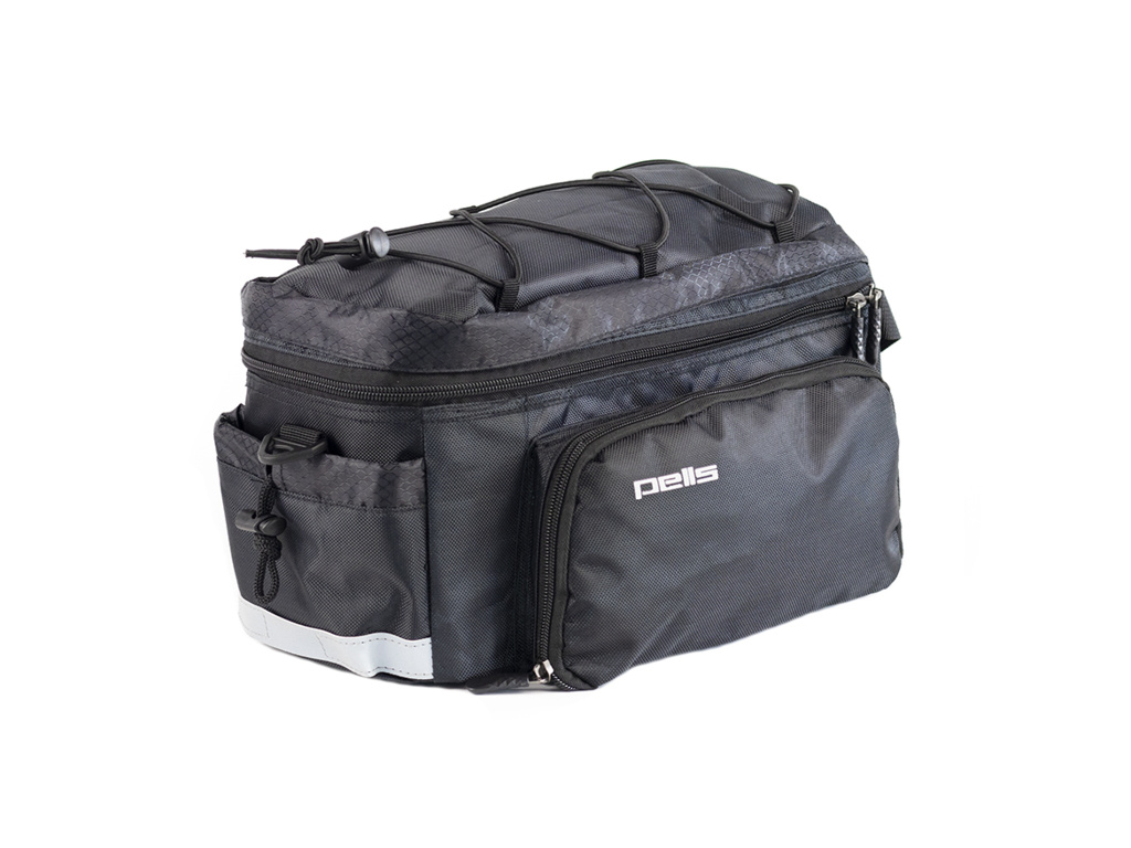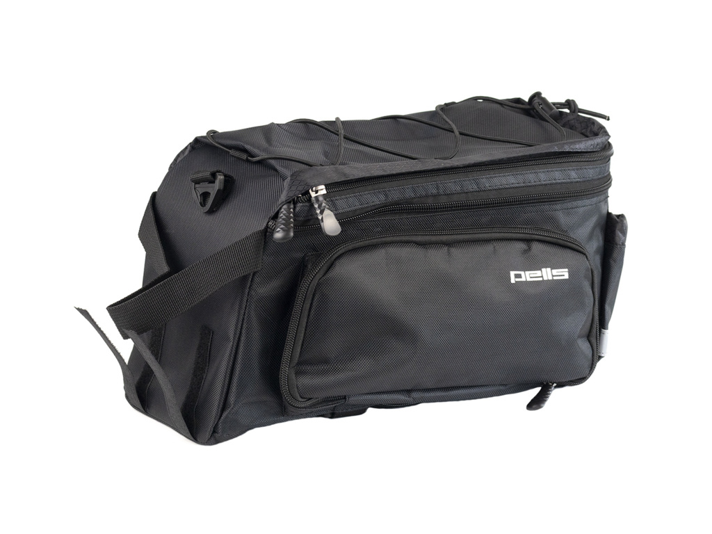 Priestrannú tašku na zadný nosič PELLS Loculo s možnosťou ďalšieho zväčšenia objemu rozopnutím zipsu oceníte na dlhých cestách na bicykli. Model sa ľahko skladá pomocou suchých zipsov, vďaka priloženému popruhu ho možno zložiť zo stojana a pohodlne prenášať a môže sa pochváliť množstvom vreciek na uloženie menších predmetov.