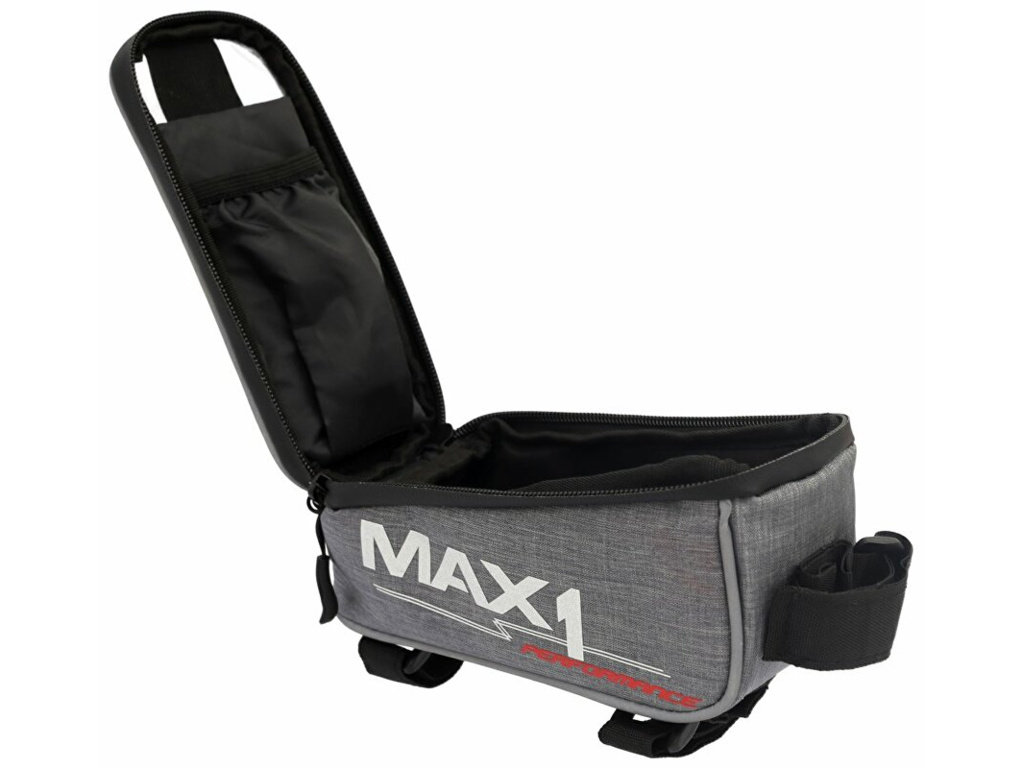 Kompaktná taška na rámovú trubku MAX1 s vreckom na mobilný telefón. Gumová membrána na umiestnenie slúchadiel na dno tašky. Hodí sa na väčšinu štandardných rámov.