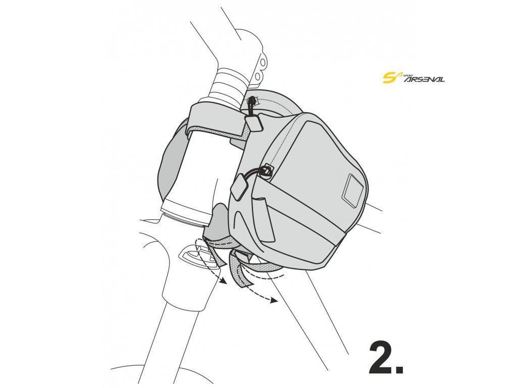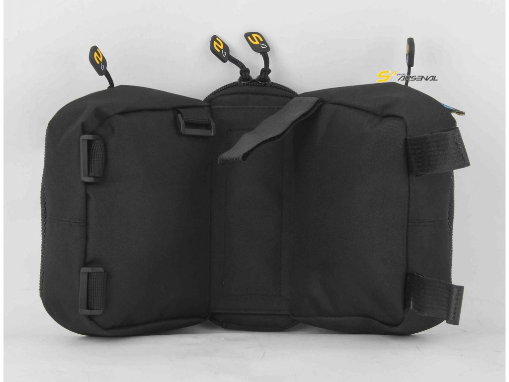 Taška s dvojitým rámom a vreckom na smartfón na nevyhnutné drobnosti (mobilný telefón, powerbanka, peňaženka, kľúče, sušienky) je k rámu pripevnená pomocou suchých zipsov. Taška má vrecko na smartfón a dve samostatné bočné vrecká na zips.