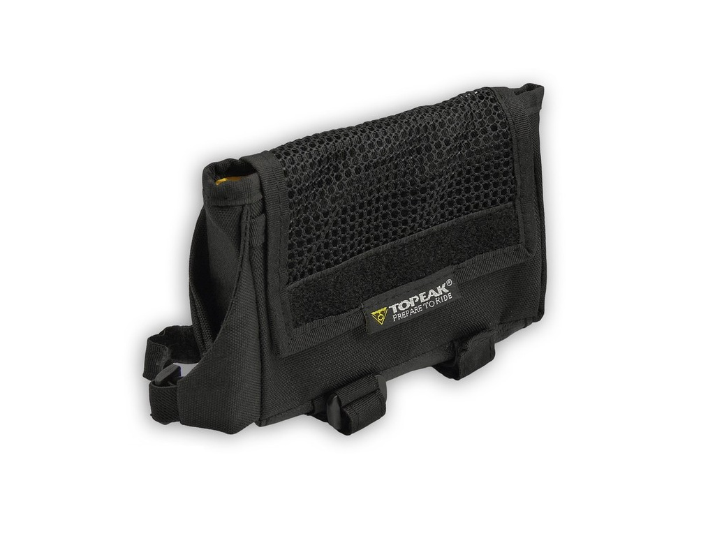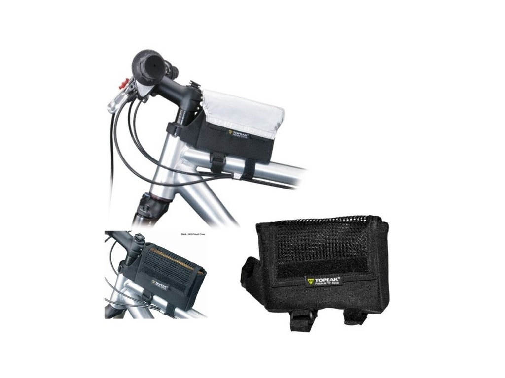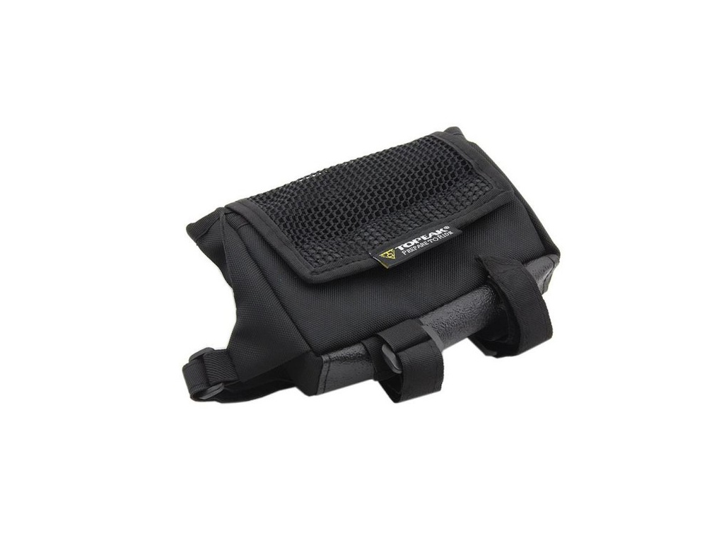 Menší verze brašny na rámovou trubku Topeak TriBag s pláštěnkou. Zavírání síťovanou klopou, přes kterou, lze přetáhnout pláštěnku za deště.