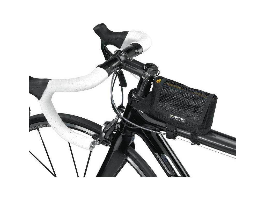 Praktická brašna namontovaná na horní trubce rámu. Poskytuje snadný přístup k energetickým tyčinkám nebo malým základním nástrojům, které musíte mít vždy po ruce.