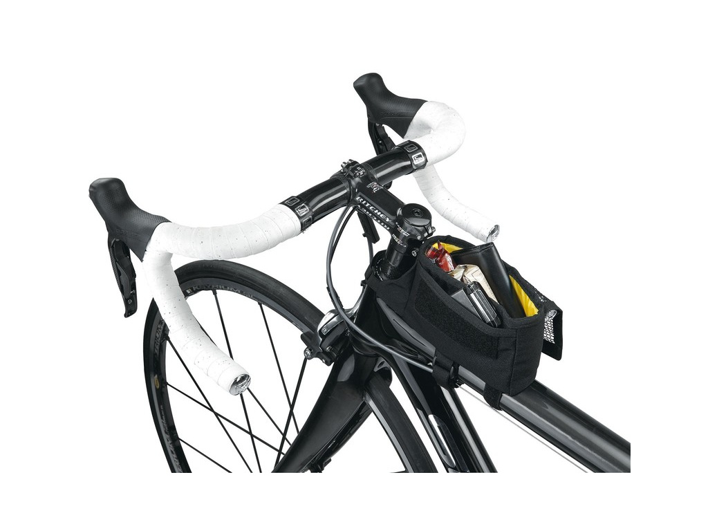 Praktická úzka taška na hornú rámovú rúrku vo veľkosti L, ktorá umožňuje prepravovať osobné veci (smartfón do veľkosti 6" (uhlopriečka displeja), PDA, energetické tyčínky, peňaženka, náradie,...) a mať ich počas jazdy poruke
