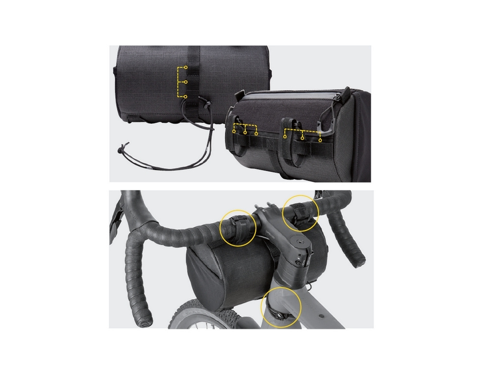 Štýlová predná taška v tvare rolky s dlhým zipsom a vrchným otváraním, perfektná výbava pre Gravel jazdenie alebo na krátke výlety, keď potrebujete zbaliť najnutnejšie veci na jazdu mimo mesta.