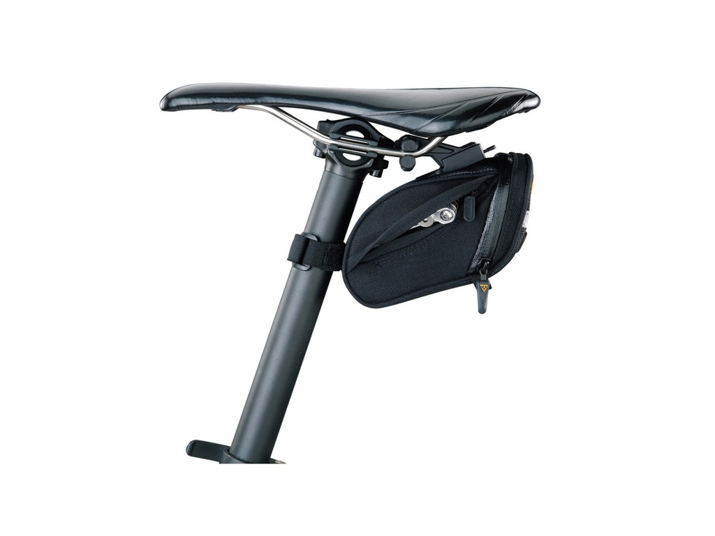 aerodynamická podsedlová taška s menším objemom pre cestné bicykle, vhodná na prepravu duše, náradia a iného príslušenstva na opravu bicykla