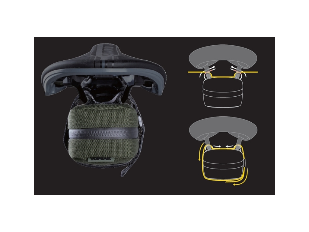 • Rail Wing system - upevnenie na vzpery sedla pomocou suchozipsového popruhu s dodatočným fixačným protisklzovým pásikom, umožňujúcim upevnenie ďalšieho príslušenstva pod tašku